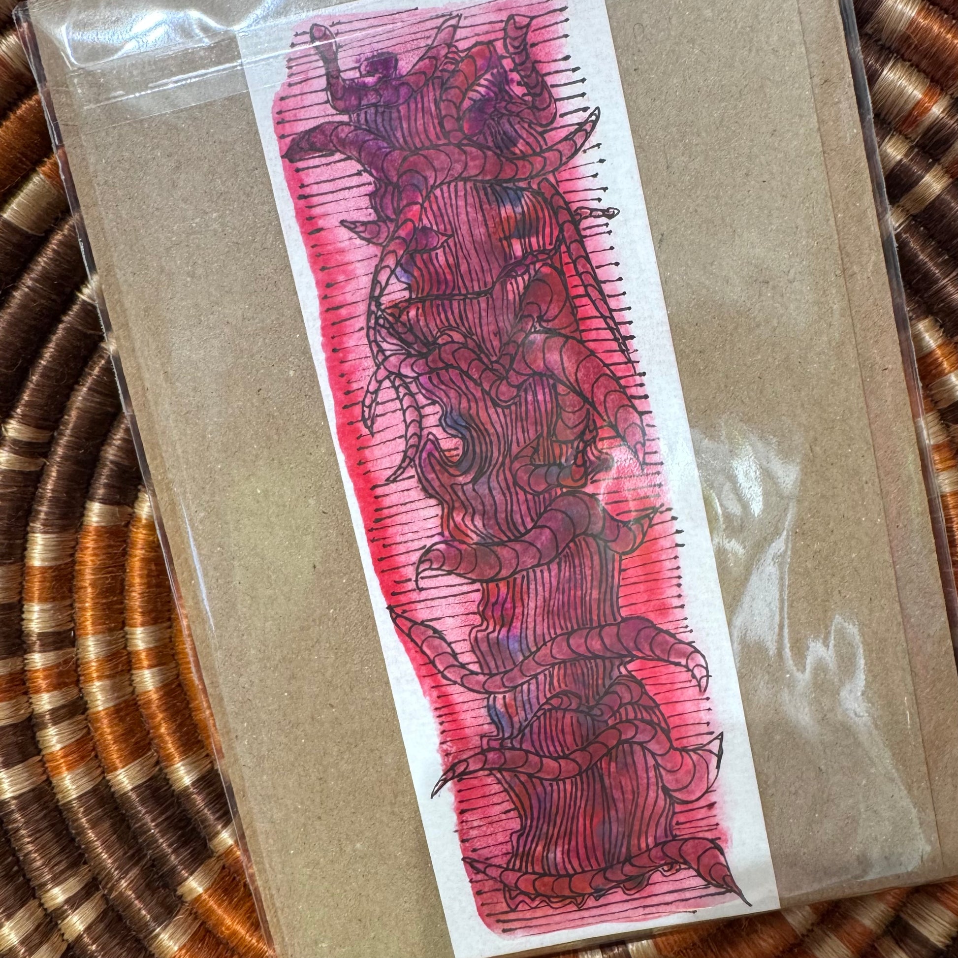 A set of two quirky one of a kind cards, hand painted with commercial watercolours and embellished with fine line pen.